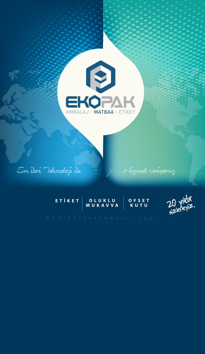Ekopak Ambalaj ve Matbaacılık hizmetleri 20 yıllık sektöre vermiş olduğu hizmetler ile siz değerli müşterilerimizin takdirini kazanmıştır. Çalıştığımız firmaların müşteri memnuniyeti ve mefaatlarini ön planda tutarak her zaman verdiği sözü tutan, yaptığı yatırımlarla sektöründe önder bir kuruluş olmayı hedefleri arasına koymuş , Gaziantep'de hep ileriyi düşünen sayılı matbaalardan birisidir. Sizde bizimle çalışarak çağın ulaştığı noktada fiyatlarda iddialı, teknolojide önder , süratte ileri , kalitede tartışmazı yaşayın.